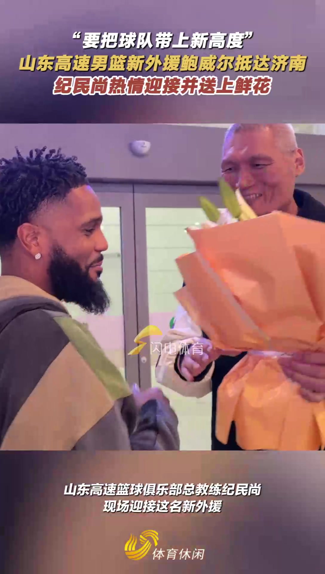 闪电体育10月22日讯 今天上午,山东高速男篮正式官宣迈尔斯-鲍威尔加盟球队。当晚,鲍威尔便抵达济南,山东高速篮球俱乐部总教练纪民尚也在现场迎接,并为其送上鲜花。鲍威尔露面后,始终和善面带微笑,口中还不时呼喊着“山东加油”的中文,展现出对球队和球迷的热情。