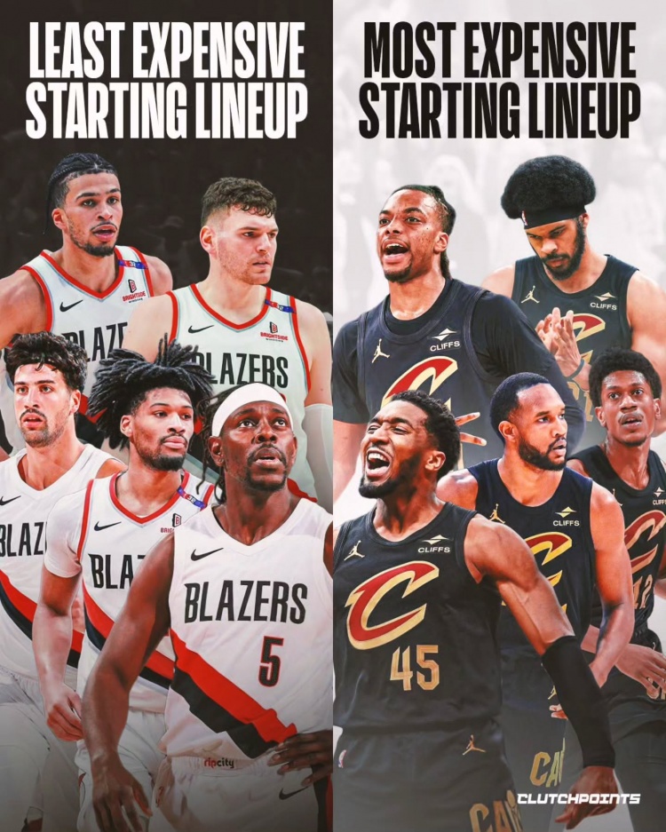 10月23日讯 美媒Clutchpoints报道,根据统计开拓者和骑士的潜在首发阵容分别是新赛季最便宜和最贵的首发阵容。其中开拓者这套潜在首发:朱-霍勒迪3240万美元