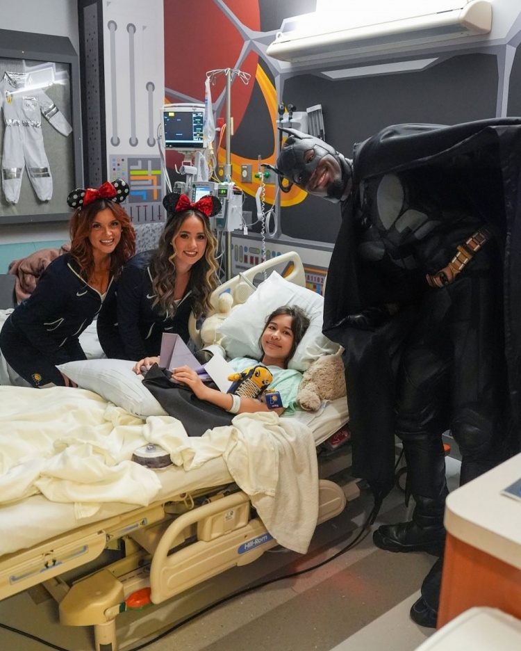 暖心大男孩!内史密斯COS蝙蝠侠 带着拉拉队去医院看望生病小朋友